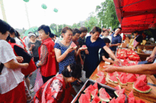 大型群众吃瓜现场,全民狂欢,共享欢乐时光